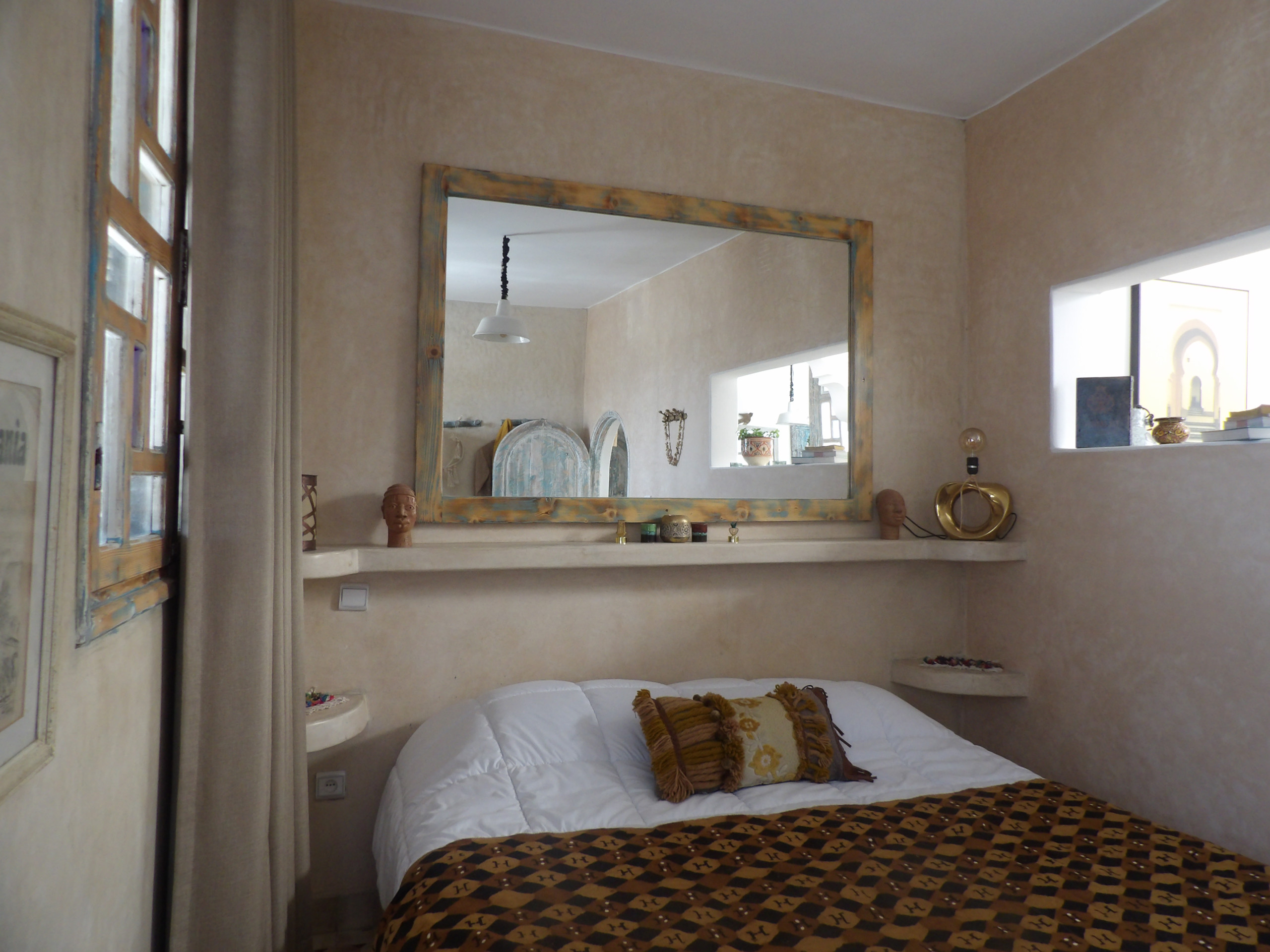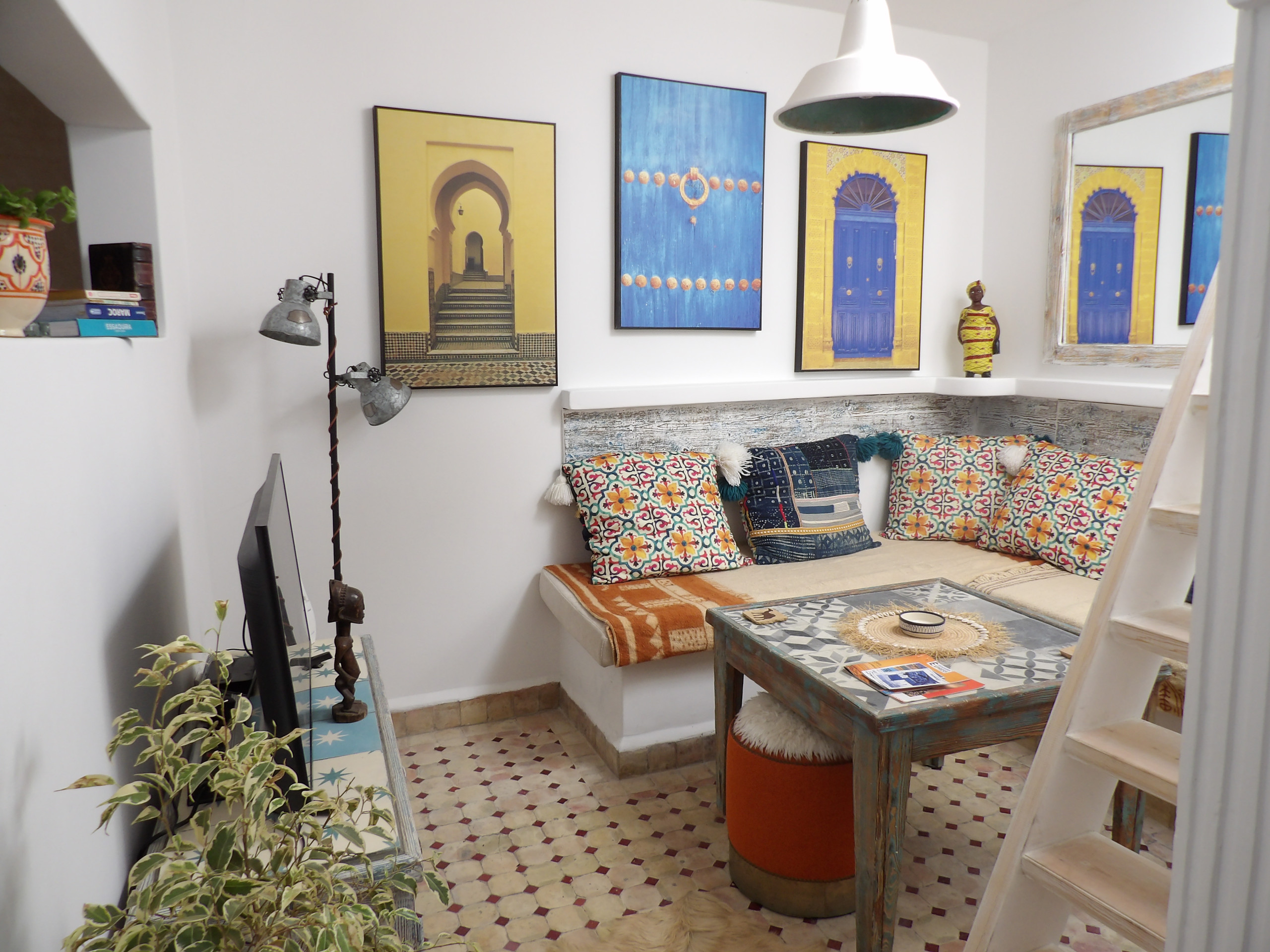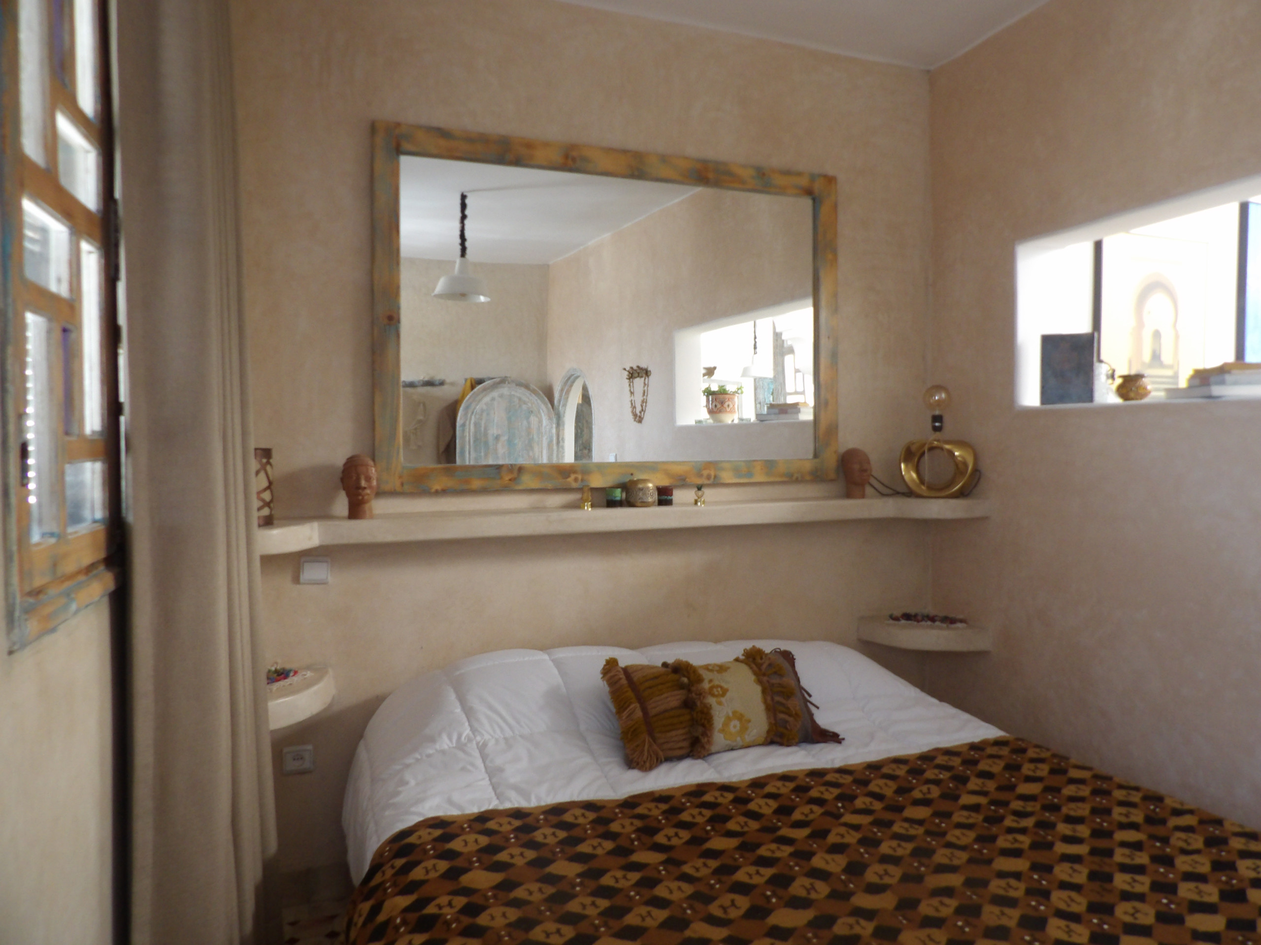 "L'Abri Bleu Médina", est un hébergement charmant idéalement situé dans la Médina d'Essaouira, parfaitement adapté aux couples en quête d'une expérience romantique et authentique. Cet appartement lumineux de 70m² offre un cadre élégant, décoré avec goût et soigneusement meublé, à seulement quelques pas de la magnifique plage de sable. En quelques minutes de marche, vous avez accès à tous les sites culturels d'Essaouira : musée et festival. Nous nous chargeons de vous réserver vos places pour les différents festival de musique ou de film.