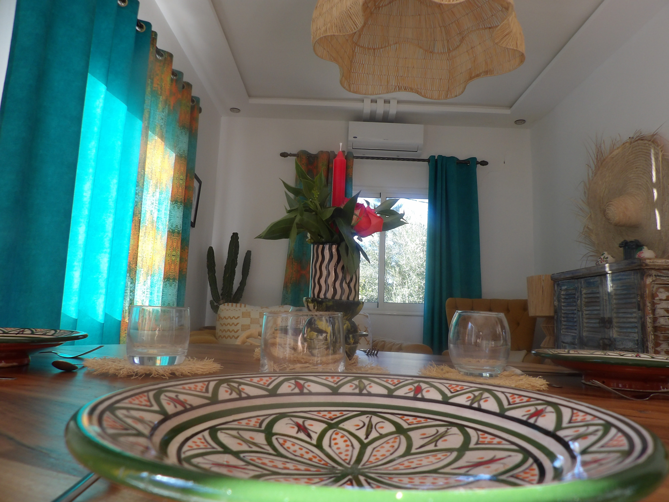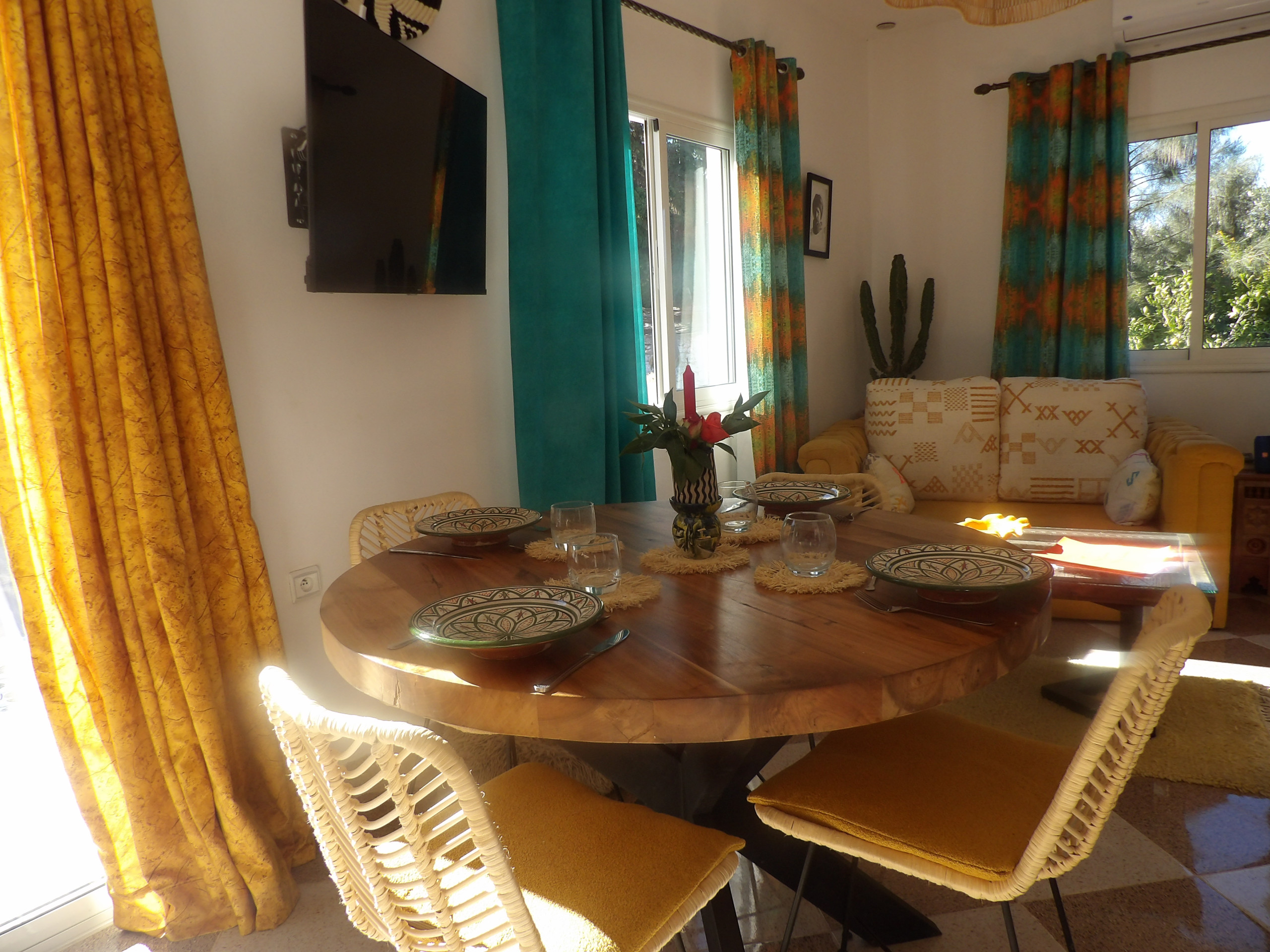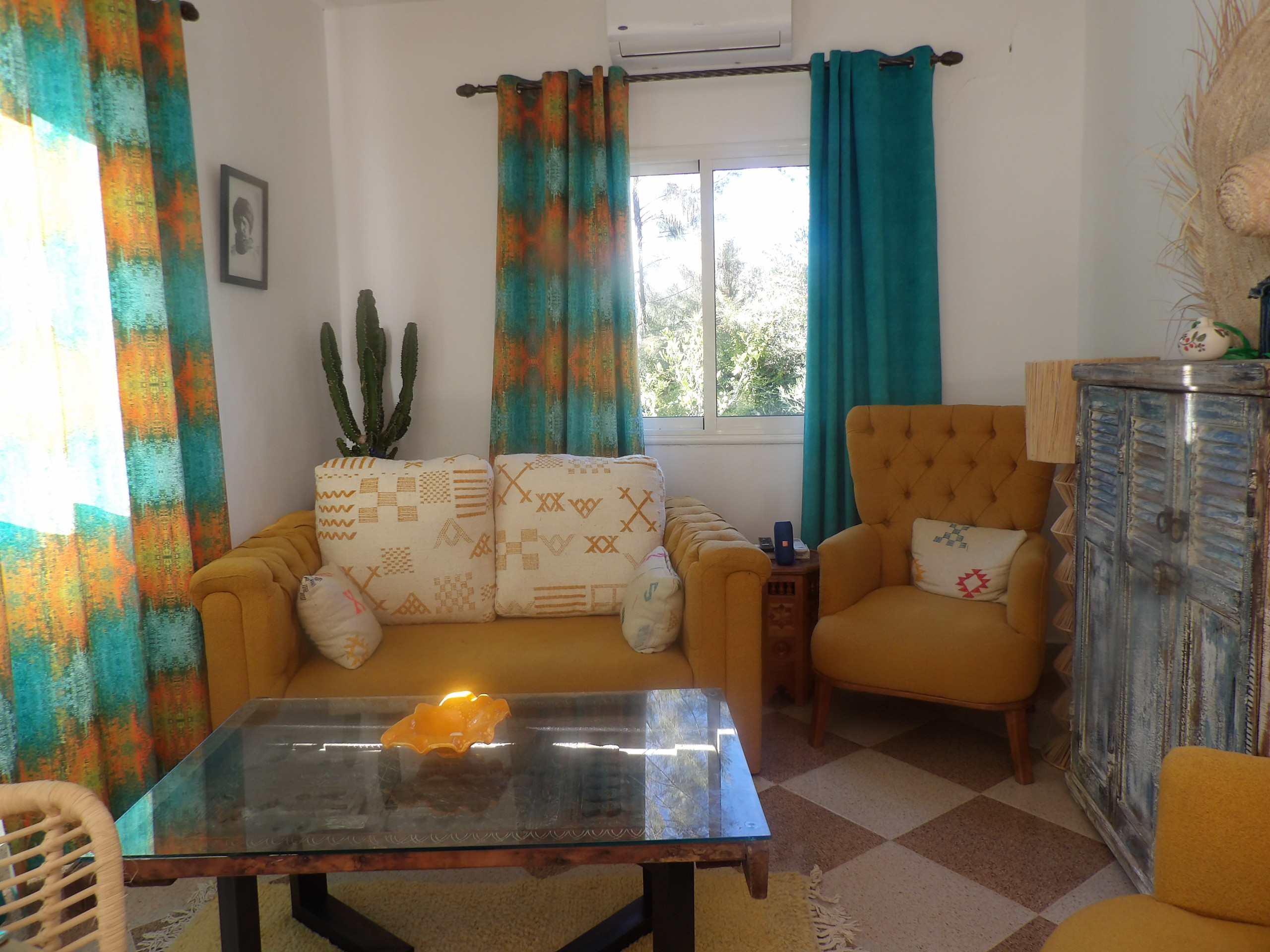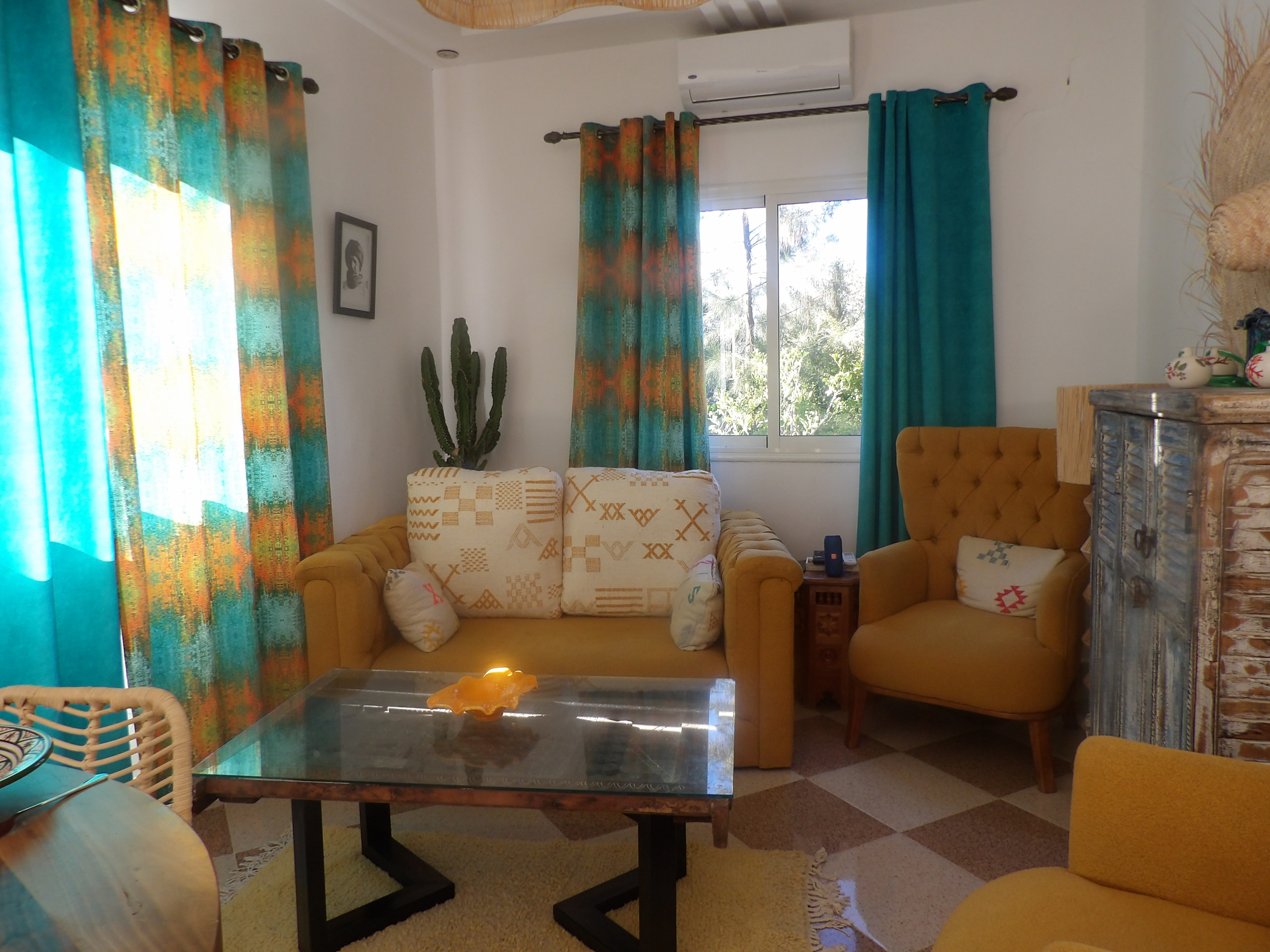 Située à proximité de Ghazoua, la maison offre un accès facile aux commodités : supermarché Aswak Salam à 6 km, restaurants et cafés à quelques minutes. La plage d'Essaouira n'est qu'à 15 km, tout comme le golf de Mogador, permettant de combiner détente et activités.