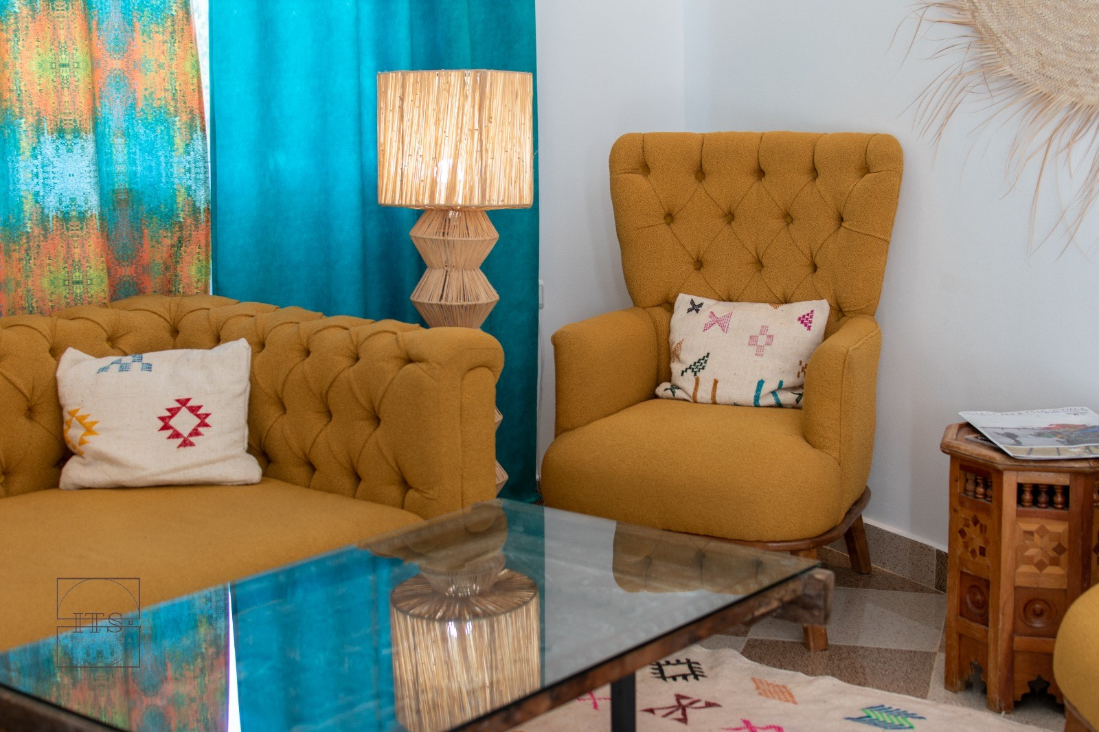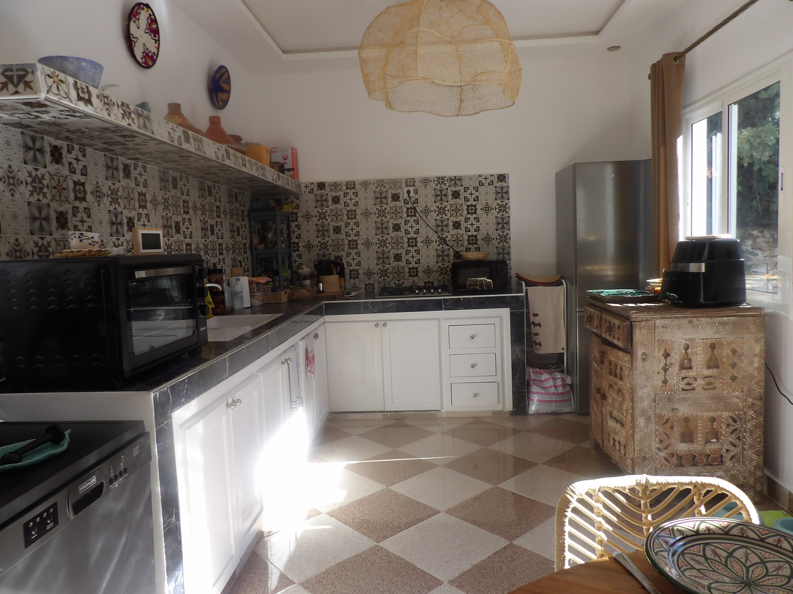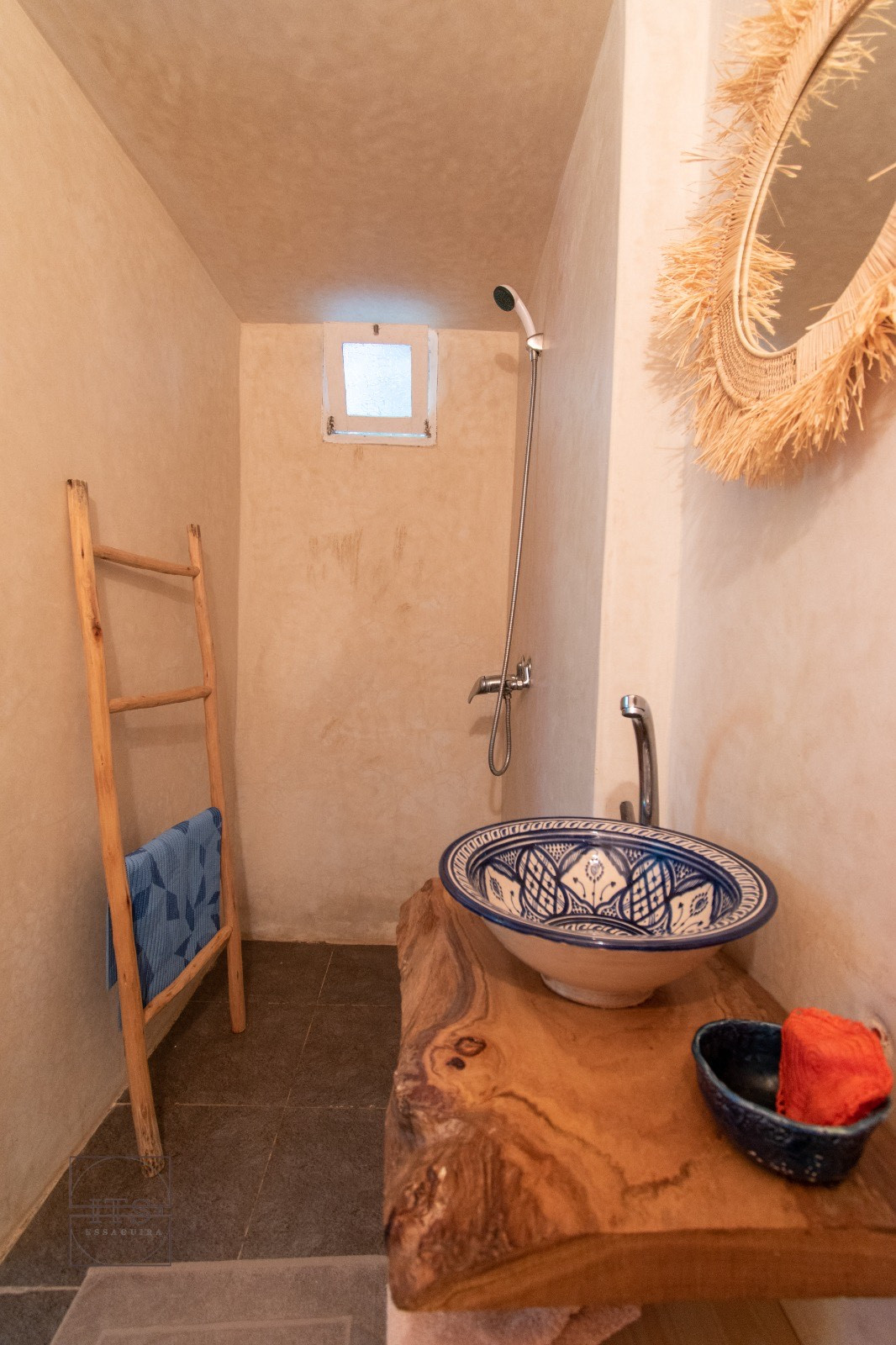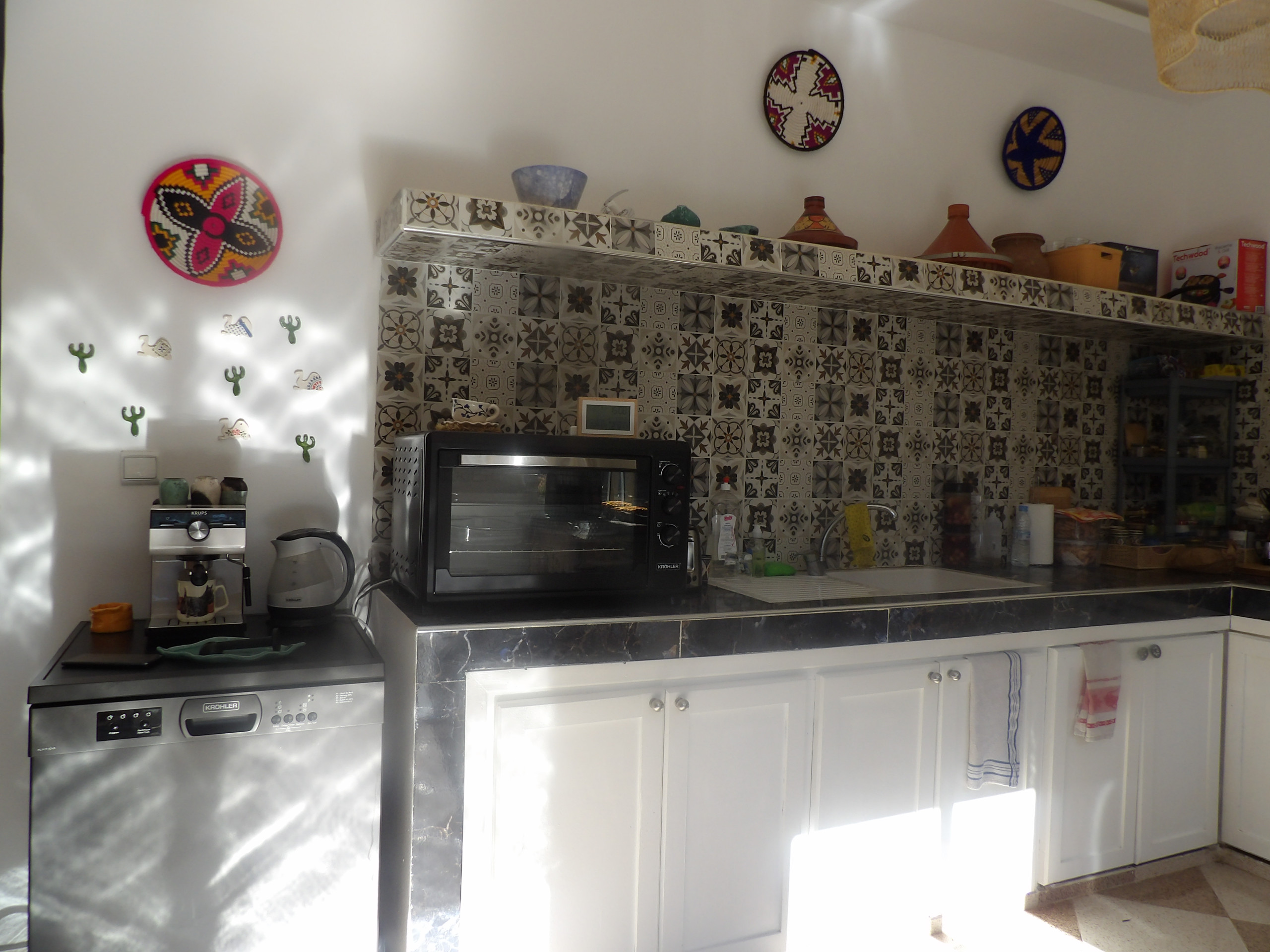 Située à proximité de Ghazoua, la maison offre un accès facile aux commodités : supermarché Aswak Salam à 6 km, restaurants et cafés à quelques minutes. La plage d'Essaouira n'est qu'à 15 km, tout comme le golf de Mogador, permettant de combiner détente et activités.